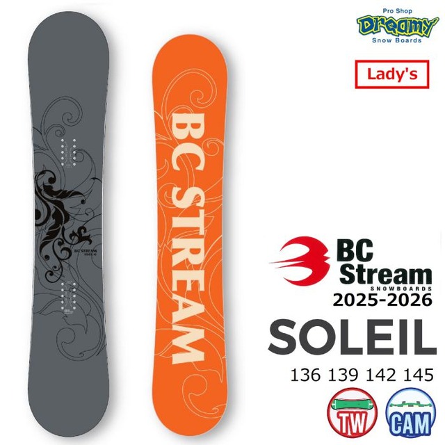 25-26 BC STREAM SOLEIL 136/139/142/145 ツイン キャンバー レディース エントリーモデル ビーシーストリーム ソレイユ 国産 スノーボード 板 正規品
