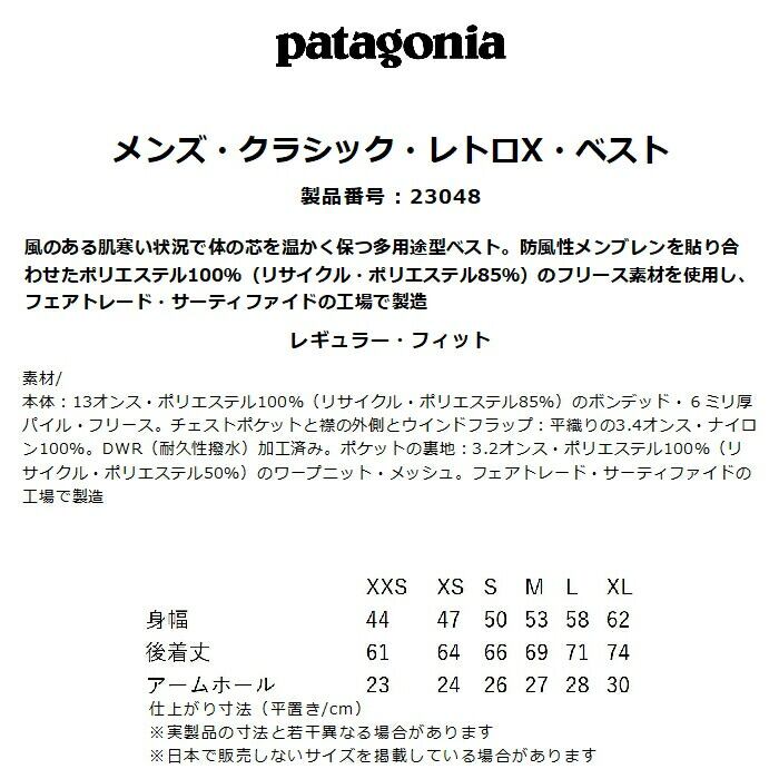 patagonia パタゴニア メンズ・クラシック・レトロX・ベスト 23048 レギュラーフィット 6mm厚ボンデッドパイルフリース 胸ポケット 防風 撥水加工 PIBL 正規品