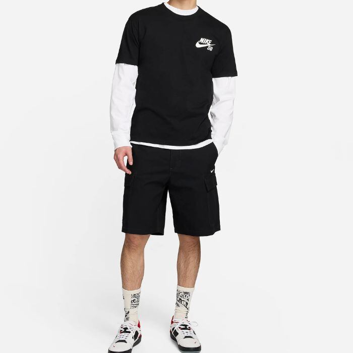 NIKE SB ナイキ ロゴ スケートボード Tシャツ DC7818-010 ブラック/ホワイト ルーズフィット リブ仕様ネックバンド 半袖 ジャージー素材 正規品
