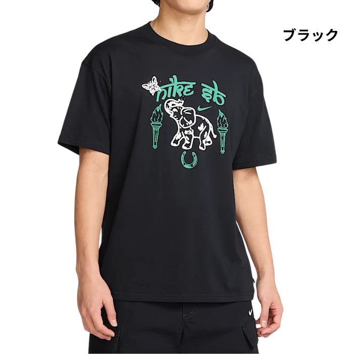 NIKE SB ナイキ マックス90 スケートボード Tシャツ HJ0805-010 ブラック ルーズフィット リブ仕様襟 半袖 正規品
