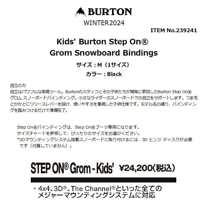 BURTON バートン Kids' Step On Grom Snowboard Bindings 239241 キッズ ステップオン グロム スノーボード バインディング 17.5-20.5cm リリースレバー 正規品