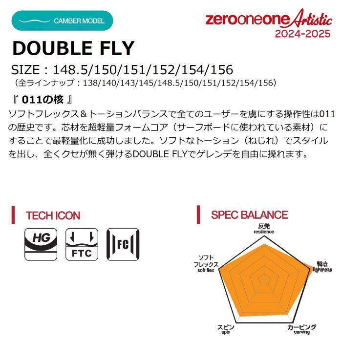 24-25 011 Artistic DOUBLE FLY 148.5/150/151/152/154/156 ゼロワンワンアーティスティック ダブルフライ フラットツインキャンバー 国産 スノーボード 正規品