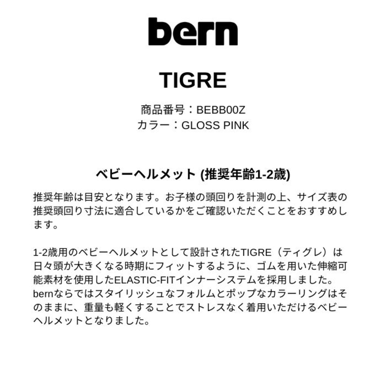 BERN バーン TIGRE ヘルメット BEBB00Z GLOSS PINK ベビーヘルメット US FIT 正規品