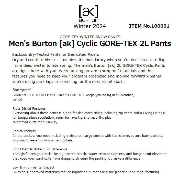 Dry and comfortable isn't just nice. It's mandatory when you're dedicated to riding from deep winter to late spring. The men's Burton [ak] 2L GORE-TEX Cyclic Pants are right there with you. We're talking proven stormproof materials and the features you need to keep your program organized and moving forward whether you're doing park laps or searching for the next secret stash.