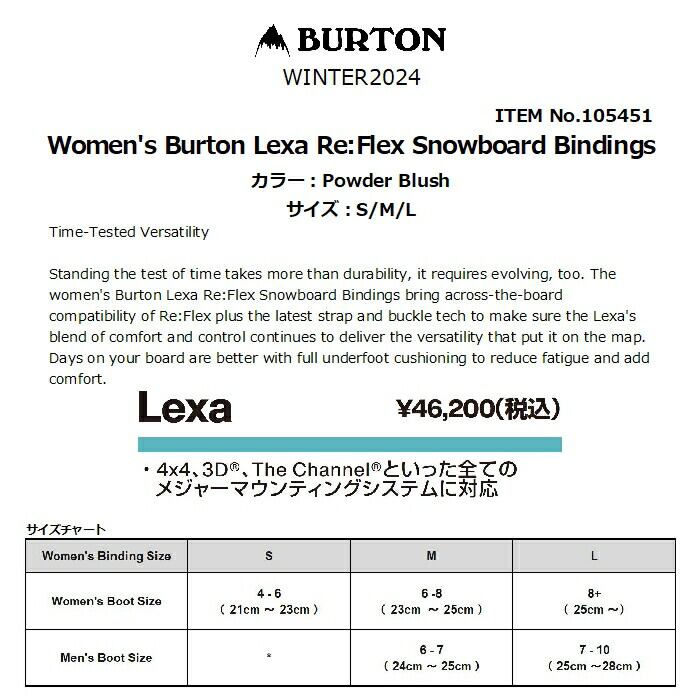 BURTON バートン Women's Burton Lexa Re:Flex Snowboard Bindings 105451 リフレックス バインディング ハードフレックス スノーボード レディース 正規品