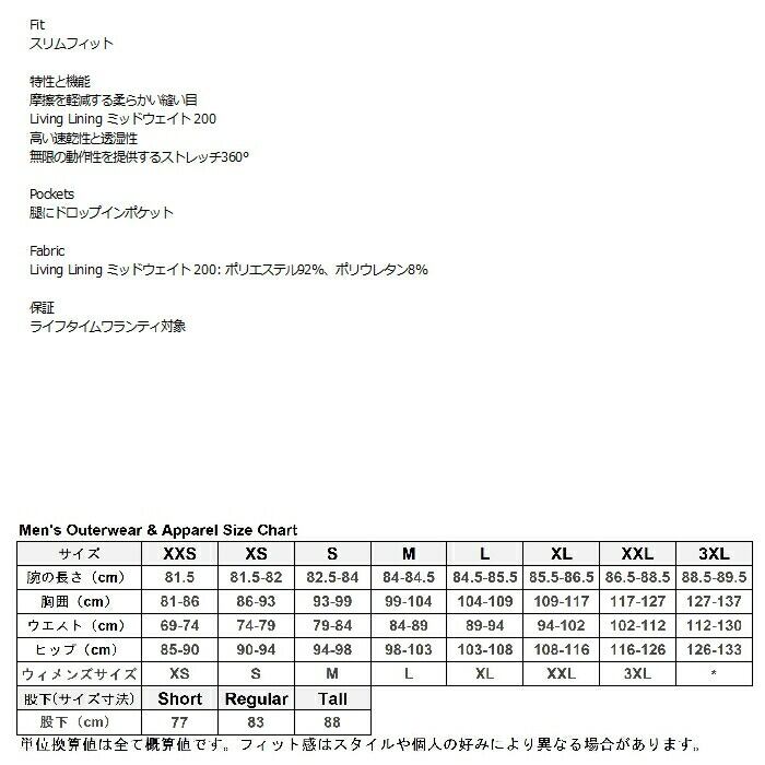Living Lining ミッドウェイト 200: ポリエステル92%、ポリウレタン8%