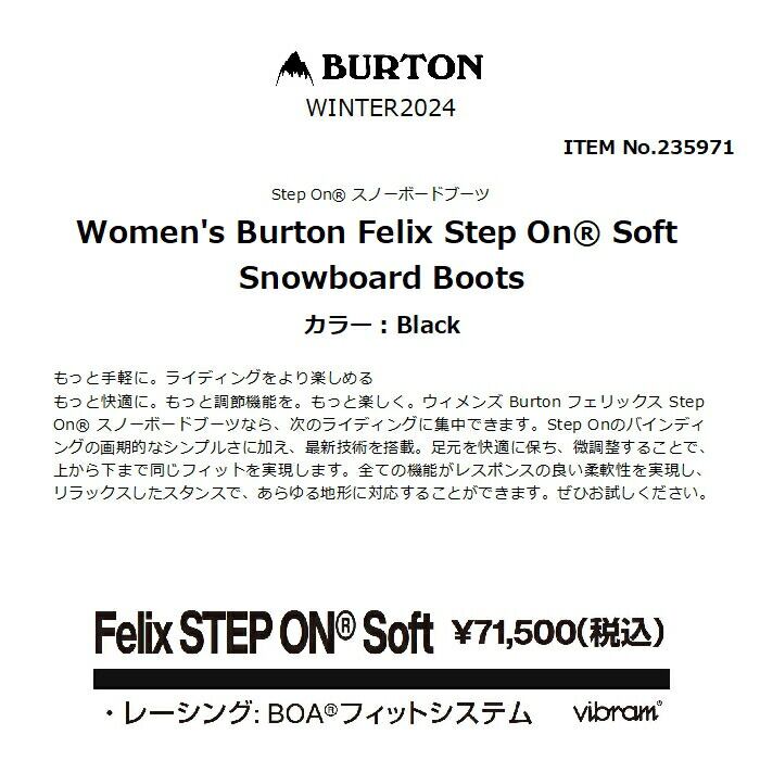 BURTON バートン Women's Felix Step On Soft Snowboard Boots 235971 ウィメンズ ステップオン フェリックス ソフト スノーボードブーツ BOA Vibram 正規品