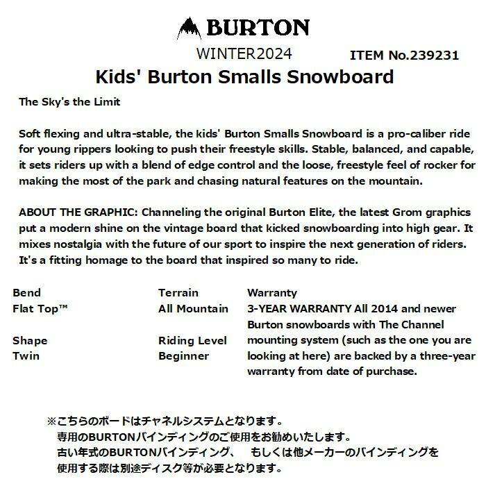 3-YEAR WARRANTY All 2014 and newer Burton snowboards with The Channel mounting system (such as the one you are looking at here) are backed by a three-year warranty from date of purchase.