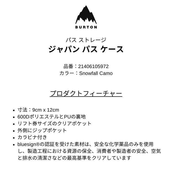 BURTON バートン ジャパン パス ケース 21406105972 Snowfall Camo リフト券ホルダー カラビナ付き 撥水加工 スノー 正規品
