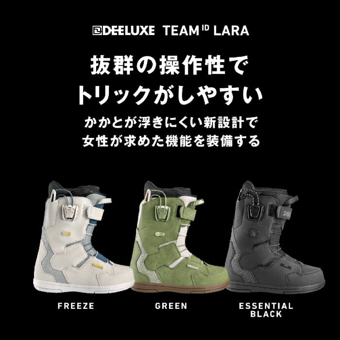24-25 DEELUXE ディーラックス TEAM ID LARA 572243-9081 S3 ESSENTIAL BLACK 熱成型対応 パワーベルト フリースタイル レディース スノーボード ブーツ 正規品