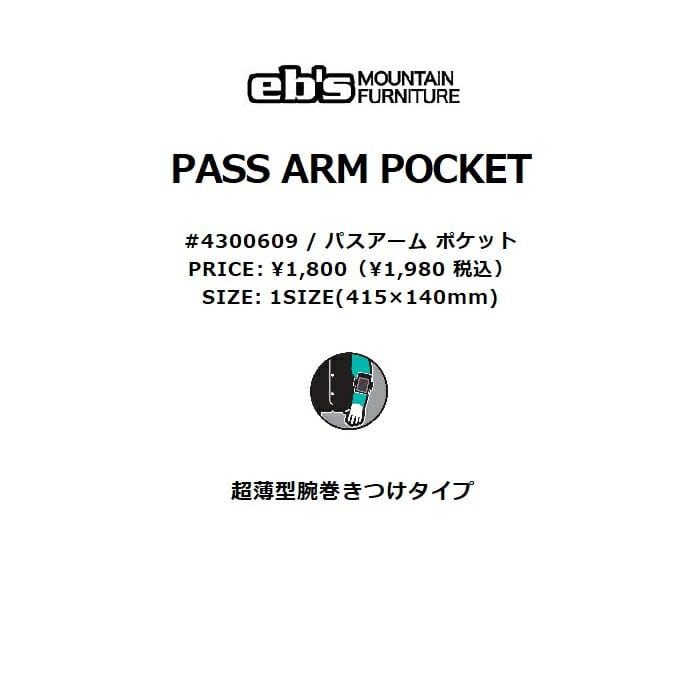 eb's エビス PASS ARM POCKET 4300609 パスアームポケット 腕巻きつけ 超薄型 縦向き サイズ調節可 リフト券ホルダー アームバンド スノーボード 正規品