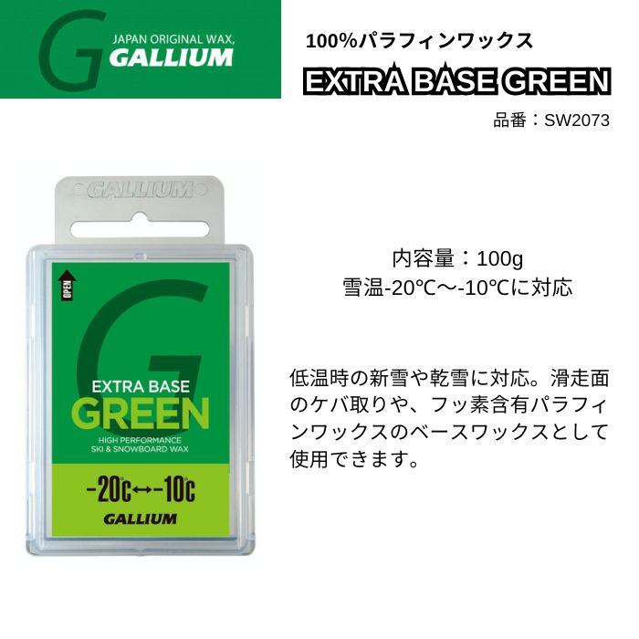 GALLIUM ガリウム EXTRA BASE GREEN 100g SW2073 パラフィンワックス ベース 新雪 乾雪 スノーボード 雪温-20℃〜-10℃ 正規品