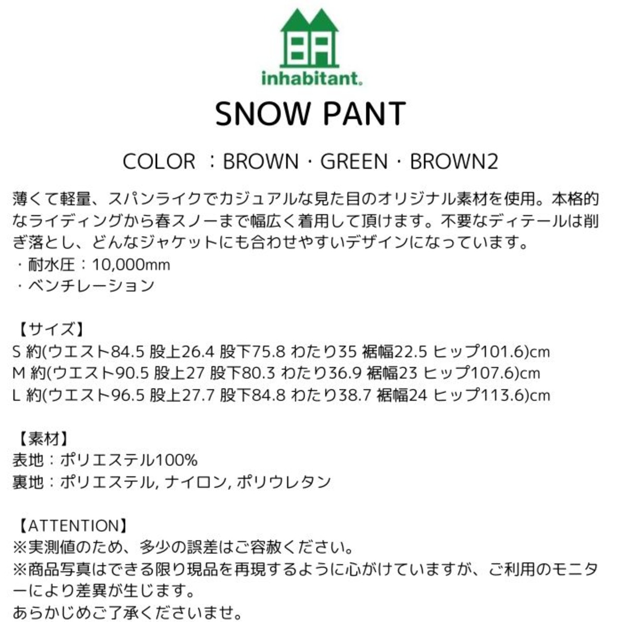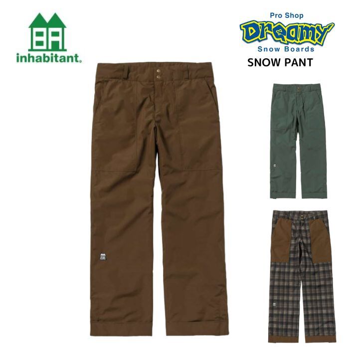 inhabitant インハビタント PADDED PANTS ISM23OB52 パンツ/中綿/スノー/耐水/撥水 CHRCL BROWN/GREEN/BROWN2 ロゴ 冬 2024モデル 正規品