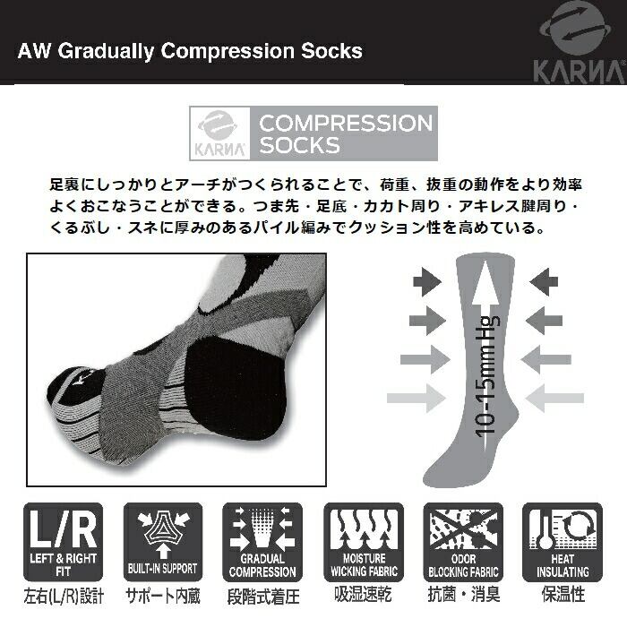KARNA カルナ AW GraduallyCompressionSocks Wool Blend KNS-1009 コンプレッションソックス サポート内臓 着圧 吸湿速乾 抗菌消臭 保温 スノーボード 正規品