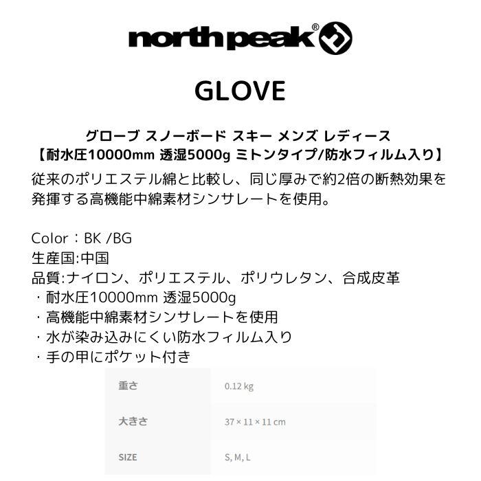 orth peak ノースピーク GLOVE グローブ スノーボード メンズ レディース 耐水圧10000mm 透湿5000g ミトンタイプ/防水フィルム入り BK/BG NP-4153 正規品