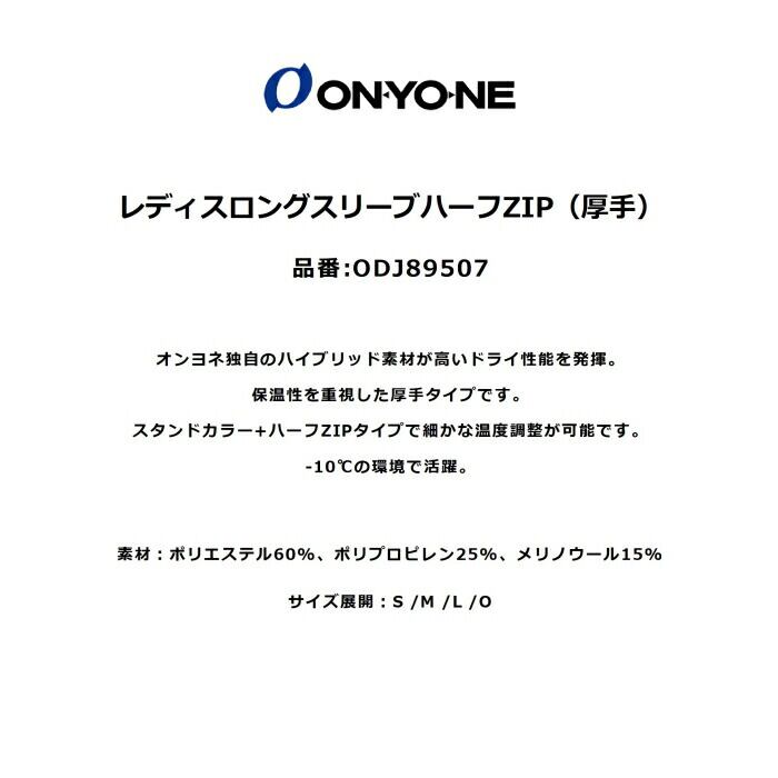 ONYONE オンヨネ レディスロングスリーブハーフZIP 厚手 ODJ89507 吸汗速乾 防臭 抗菌 ブレステックメリノPP スタンドカラー スポーツインナー 日本製 正規品