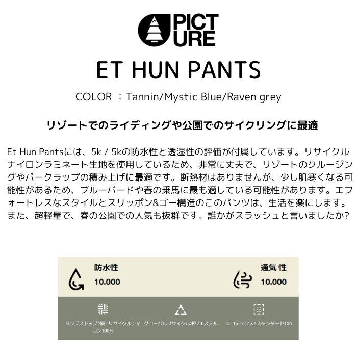 PICTURE ピクチャー 5852336047 ET HUN PANTS スノーウェア パンツ 防水性 通気性 2024 正規品