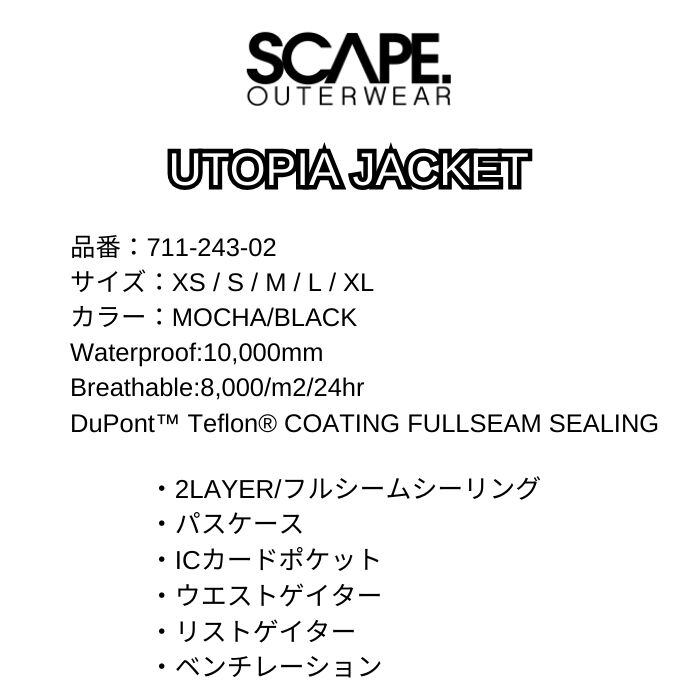 24-25 SCAPE エスケープ UTOPIA JACKET 711-243-02 MOCHA/BLACK スノージャケット ウェア 耐水圧10000mm 2LAYER 正規品