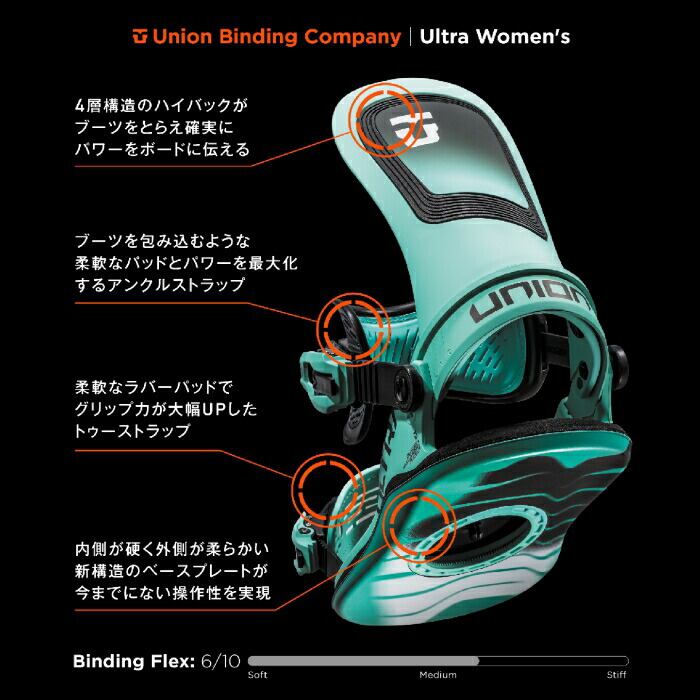 24-25 UNION ユニオン ULTRA ウルトラ Aqua ミニディスク ミディアムソフト オールラウンド スノーボード ウィメンズ レディース バインディング 2025 正規品