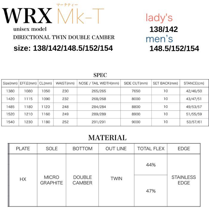 23-24 WRX ダブルアールエックス Mk-T マークティー 138/142/148.5/152/154 ダブルキャンバー ユニセックス スノーボード 2024モデル 正規品