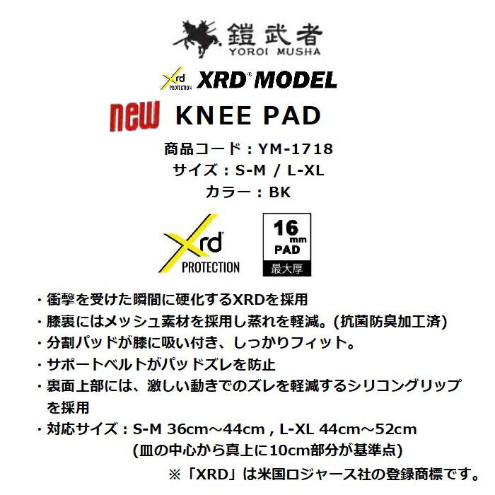鎧武者 ヨロイムシャ KNEE PAD YM-1718 XRD パッド最大厚16mm 最大レイヤー数2層+3Dメッシュ 抗菌防臭加工 サポートベルト BK ユニセックス スノーボード 正規品