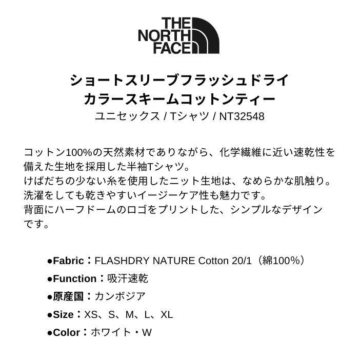 THE NORTH FACE ノースフェース S/Sフラッシュドライカラースキームコットンティー NT32548 ホワイト・W ユニセックス 吸汗速乾 半袖 Tシャツ 正規品
