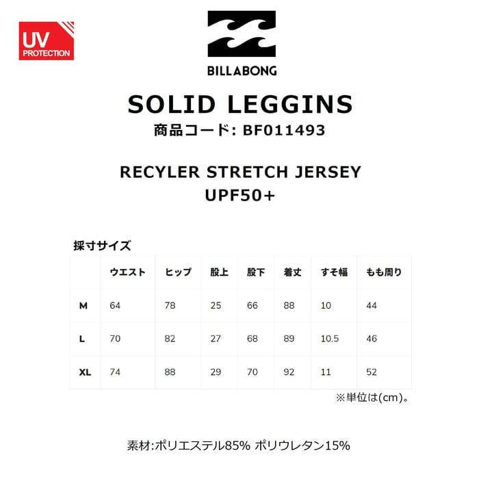 BILLABONG SOLID LEGGINS BF011493 ラッシュレギンス 10分丈 レギュラーライズフィット UVプロテクション ストレッチジャージー ロゴ 水着 ビラボン 正規品