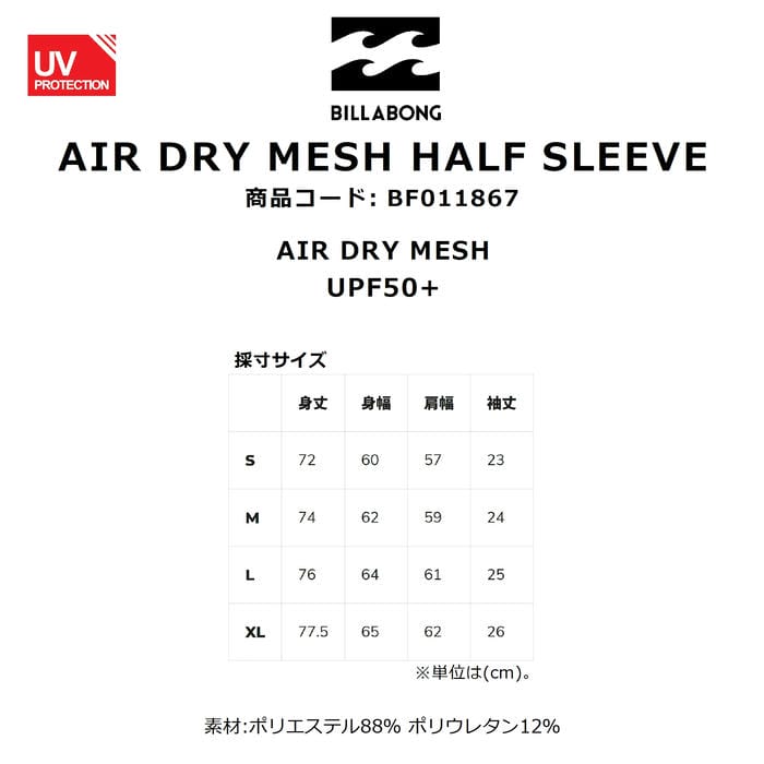BILLABONG AIR DRY MESH HALF SLEEVE BF011867 ラッシュガード Tシャツ メッシュ 半袖 UVプロテクション ストレッチ 速乾 バックプリント ロゴ ビラボン 正規品