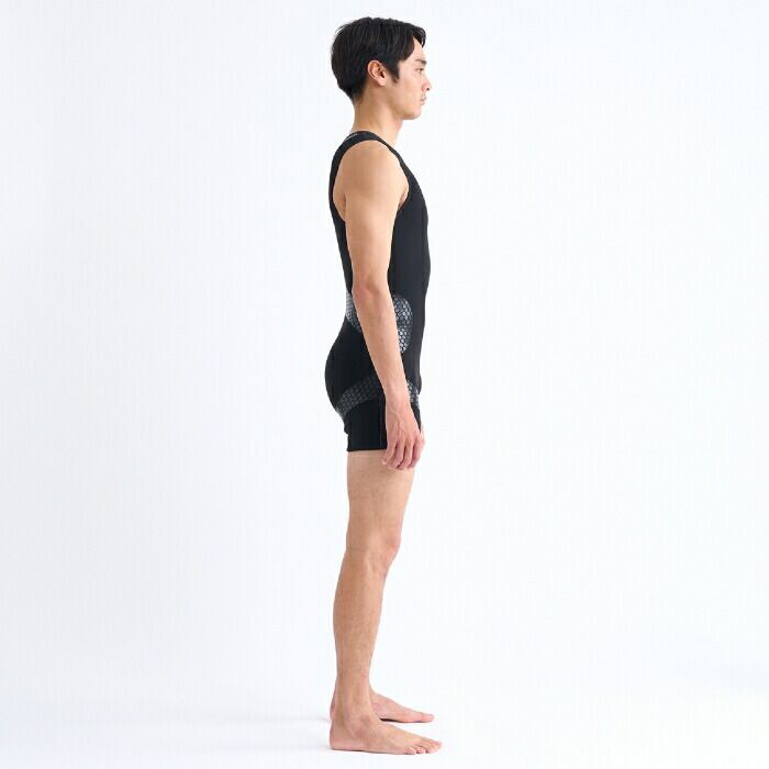 概要 保温コンディショニングインナーショートジョン。1mm厚のネオプレンで、遠赤外線蓄熱保温機能を保有する起毛素材を肌面に使用。ジャーフルの下に着れば、フルスーツとセミドライの中間シーズンに大活躍必至です。暖冬のシチュエーションにも重宝するだけでなく、もちろん極寒シーズンのセミドライのインナーにも着用可。1mmのウェットインナーなので保温力は抜群です。骨盤周りを安定させ、背中も丸まらないよう、そしてヒップアップ効果で足を上げやすく、姿勢サポート効果のある特許取得の機能も搭載。多機能プロダクトで冬のサーフィンを応援します。