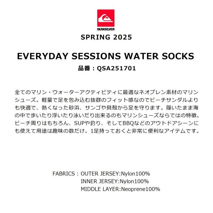 QUIKSILVER EVERYDAY SESSIONS WATER SOCKS QSA251701 ウォーターシューズ ネオプレン素材 ウォーターアクティビティ SUP 釣り マリンシューズ BLK ロゴ 正規品