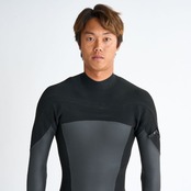 春秋を代表するロングチェストジップシステム搭載のフルスーツです。伸縮性コイルジッパーでスムースに開閉する大きめのフラップと広めの開口部が、防水保温性と着脱のし易さを高水準で両立。運動性においても、ジップ周りのオーバーサイジングによって肩・腕を回しやすくしています。素材はクラシックでスタイル感満載のラバー使いと、表面ジャージ部分にはトップラインでも使用の超伸縮素材を採用。また運動性や着心地を左右する型紙は日本製で安心のジャパンフィット。ネオプレンからジャージに至るまで全てリサイクル素材を使用した、環境配慮型のプロダクトです。