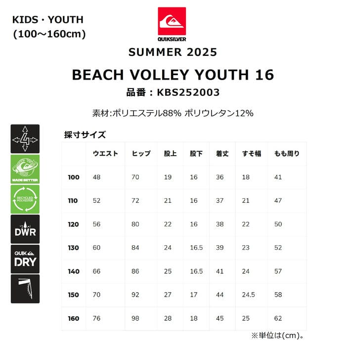 QUIKSILVER BEACH VOLLEY YOUTH 16 KBS252003 キッズ ボードショーツ 100-160cm 4WAYストレッチ 撥水 速乾 インナー付き 水着 クイックシルバー ユース 正規品