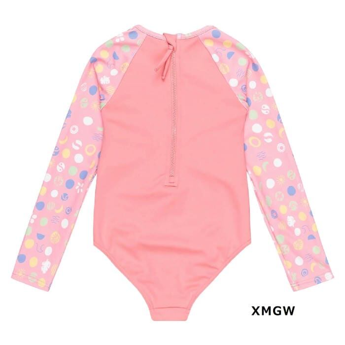ROXY DOT ONESIE ERLWR03326 キッズ ワンピース 水着 100-120cm 長袖 ワンジー バックジップ ラグランスリーブ ロゴ XMGW スイムウェア ロキシー ガール 正規品