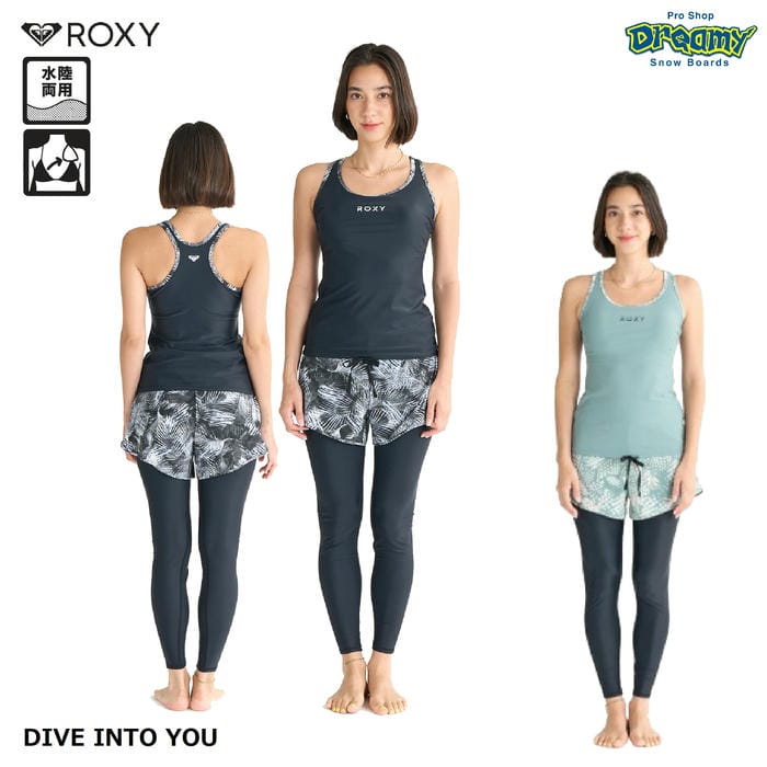ROXY FITNESS DIVE INTO YOU RSW251501 フィットネス 水着 水陸両用 塩素対応 タンクトップ パンツ一体型レギンス めくれ防止スナップ ロゴ ロキシー 正規品
