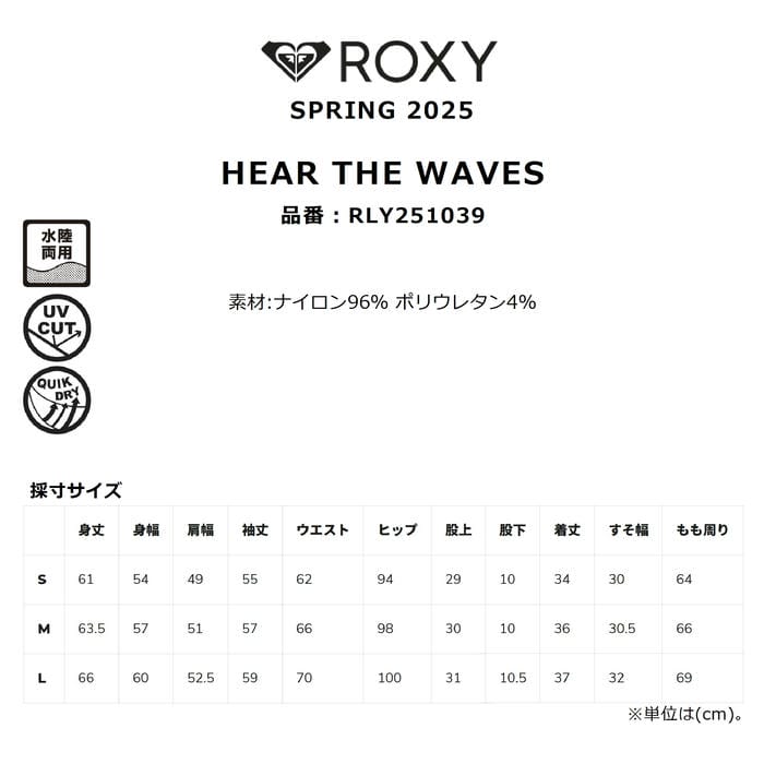 ROXY HEAR THE WAVES RLY251039 ラッシュガード 2点セット 4WAYストレッチ 水陸両用 塩素対応 UVカット 速乾 長袖 ショートパンツ 水着 ロキシー 正規品