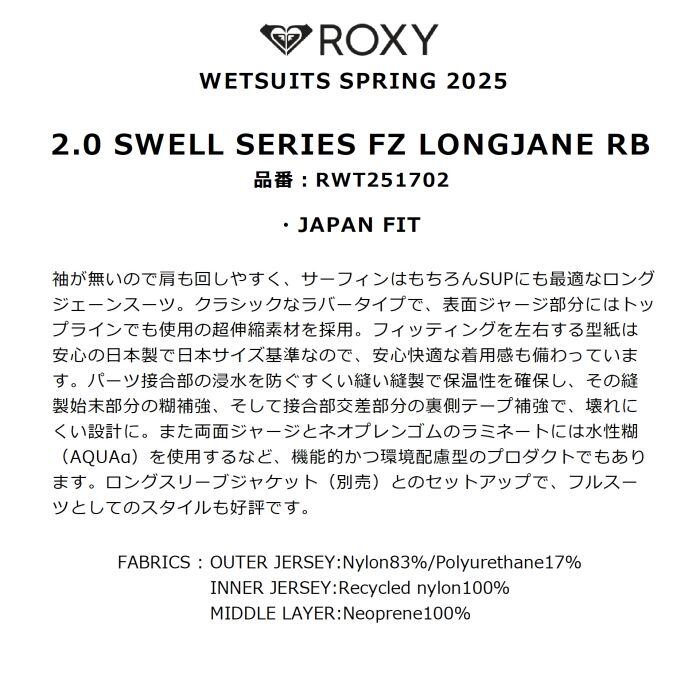 ROXY 2.0 SWELL SERIES FZ LONGJANE RB RWT251702 ロングジョン ラバータイプ 超伸縮素材 すくい縫い製法 BLK ジャパンフィット ロキシー ウェットスーツ 正規品