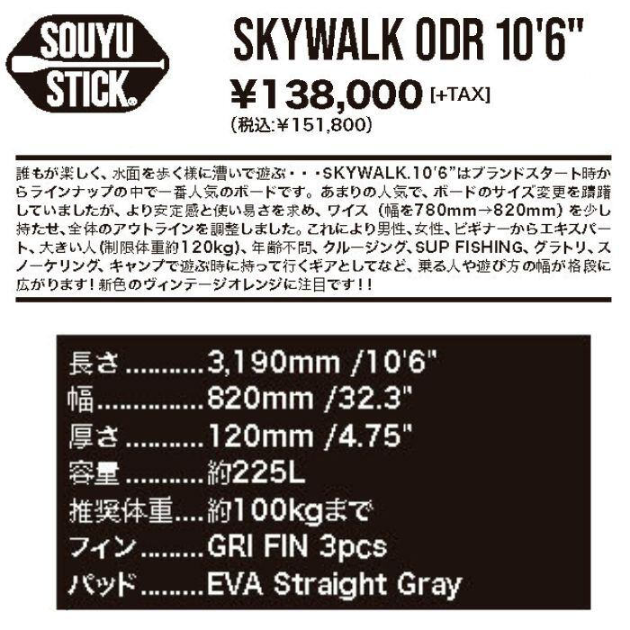 SOUYUSTICK ソーユースティック SKYWALK ODR 10’6” スカイウォーク WRS 熱圧着 軽量 ソウユウ SUP スタンドアップパドル