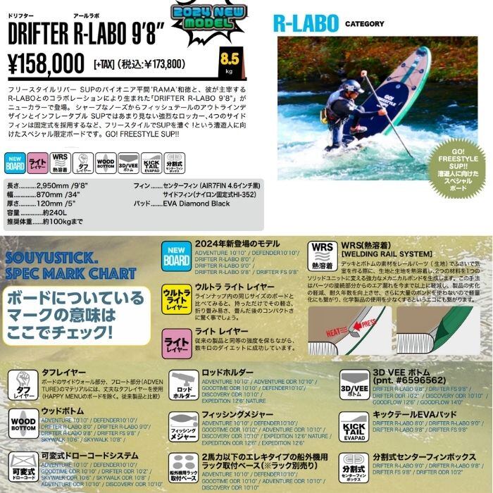 SOUYUSTICK ソーユースティック DRIFTER R-LABO 9'8” ドリフター アールラボ WRS 熱圧着 フリースタイル リバーサップ 平間 ラマ SUP