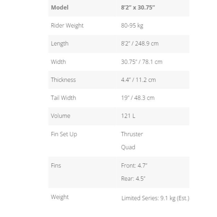 メーカー希望小売価格はメーカーカタログに基づいて掲載しています商品説明モデル名STARBOARDSPICE LIMITED 8’2”×30.75”定価:210000+(税)サイズ8'2"モデルSPICELTD商品説明8’2”は、ポルトガルで開発中のトレバー・タニントンのお気に入りのサイズ。このサイズはパドリングしやすく、薄いベベルレールが瞬時に反応する。速さ、安定性、そしてポイントを押さえたパフォーマンスは、そのサイズを感じさせません。SPEC8’2″ x 30.75″ / 121 LLength: 8’2″ / 249 cmWidth: 30.75″ / 78 cm※注意事項●返品について●お客様都合によるご注文後の返品・キャンセル・交換は一切受け付けておりませんので、予めご了承下さい。●商品画像について●撮影状況、PC状況により、色合いが若干異なる場合がありますので、ご了承の上ご購入ください。●商品欠品について●掲載されている全ての商品は実店舗・他のネットショッピングでも販売しております。ご注文を承り次第在庫を確保しますが、完売の際はご容赦下さい。 ●送料について●北海道・沖縄・離島等の場合、別途送料が必要となります。