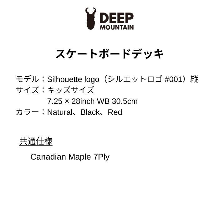 DEEP MOUNTAIN ディープマウンテン スケートボードデッキ Silhouette logo シルエットロゴ #001 縦 7.25×28inch×WB30.5cm キッズサイズ スケートボード 正規品