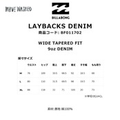 BILLABONG LAYBACKS DENIM BF011702 ロングパンツ デニム ワイドテーパードフィット ウエストゴム ドローコード Gパン インディゴコレクション ビラボン 正規品