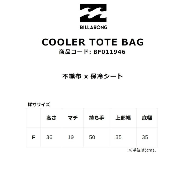 BILLABONG COOLER TOTE BAG BF011946 トートバッグ 保冷 不織布 ファスナー開閉 マチ付き ロゴ プリント クーラーバッグ エコバッグ ビラボン 正規品