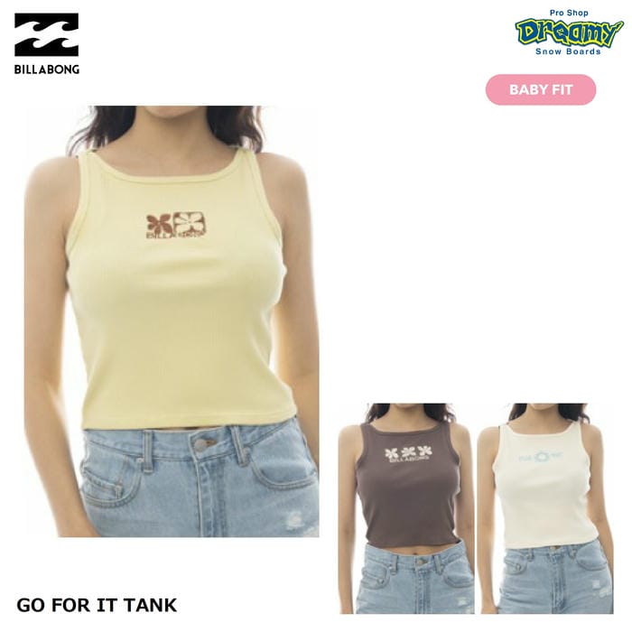BILLABONG GO FOR IT TANK BF013360 タンクトップ ベイビーフィット テレコ ハイネック スクエアネック ショート丈 刺? ロゴ ビラボン レディース 正規品