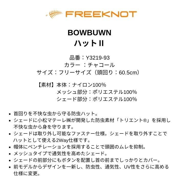 FREEKNOT フリーノット BOWBUWN ハット2 Y3219-93 チャコール フリーサイズ 防虫 2way シェード取り外し可能 通気性 帽子 正規品
