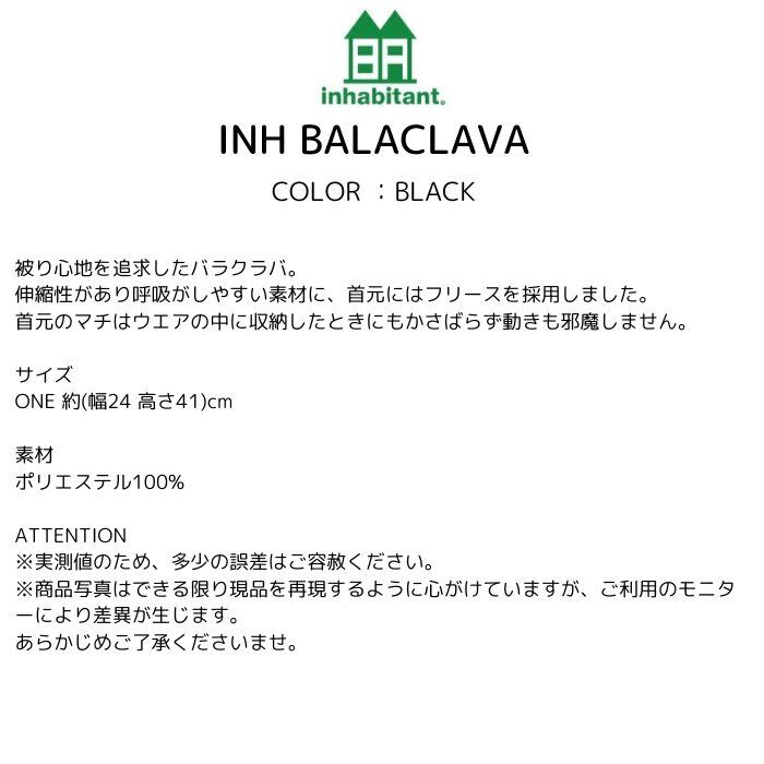 inhabitant インハビタント NECKWERE INH BALACLAVA ISM23NW50 バラクラバ BLACK ロゴ 冬 2024モデル 正規品