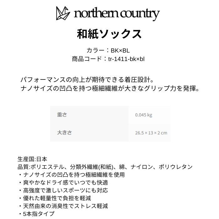 northern country ノーザンカントリー 和紙ソックス 5本指タイプ コンプレッション 速乾 軽量 耐久 消臭 高グリップ BK×BL TR-1411 正規品