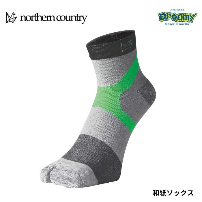 northern country ノーザンカントリー 和紙ソックス 足袋タイプ コンプレッション 速乾 軽量 耐久 消臭 高グリップ GY×GN TR-1413 正規品