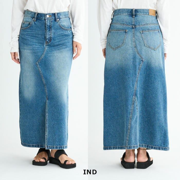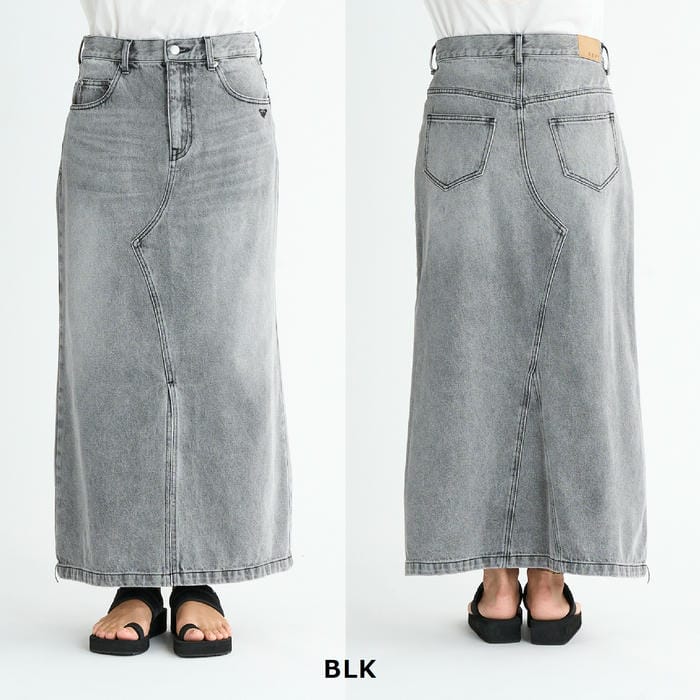 ROXY LIVED IN DENIM SKIRT RSK251062 スカート ロング Aライン デニム 13oz フロントスリット ヒゲ加工 フロント/バックポケット ロゴ ロキシー 正規品
