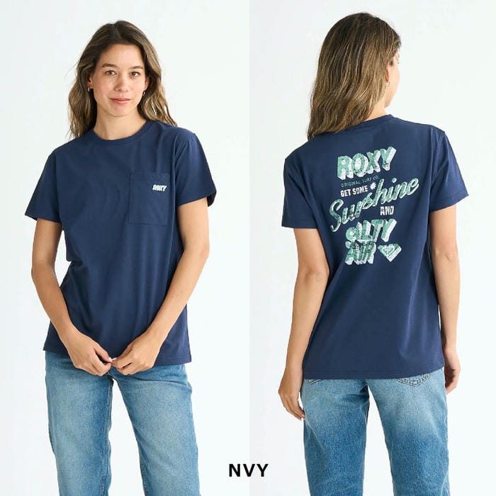 ROXY GET SOME SUNSHINE RST251100 Tシャツ 半袖 ボックスシルエット 接触冷感 胸ポケット かすれ加工 バックプリント ロゴ 刺? ロキシー 正規品