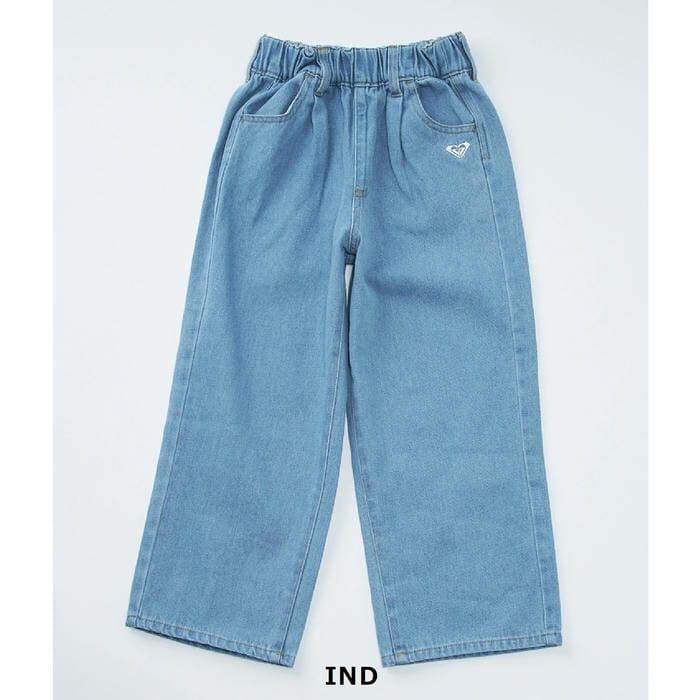ROXY MINI LIVED IN DENIM PANTS TPT251113 キッズ パンツ 100-150cm ワイドシルエット デニム 10分丈 ウエストゴム仕様 ロゴ 刺? ロキシー ガール 正規品